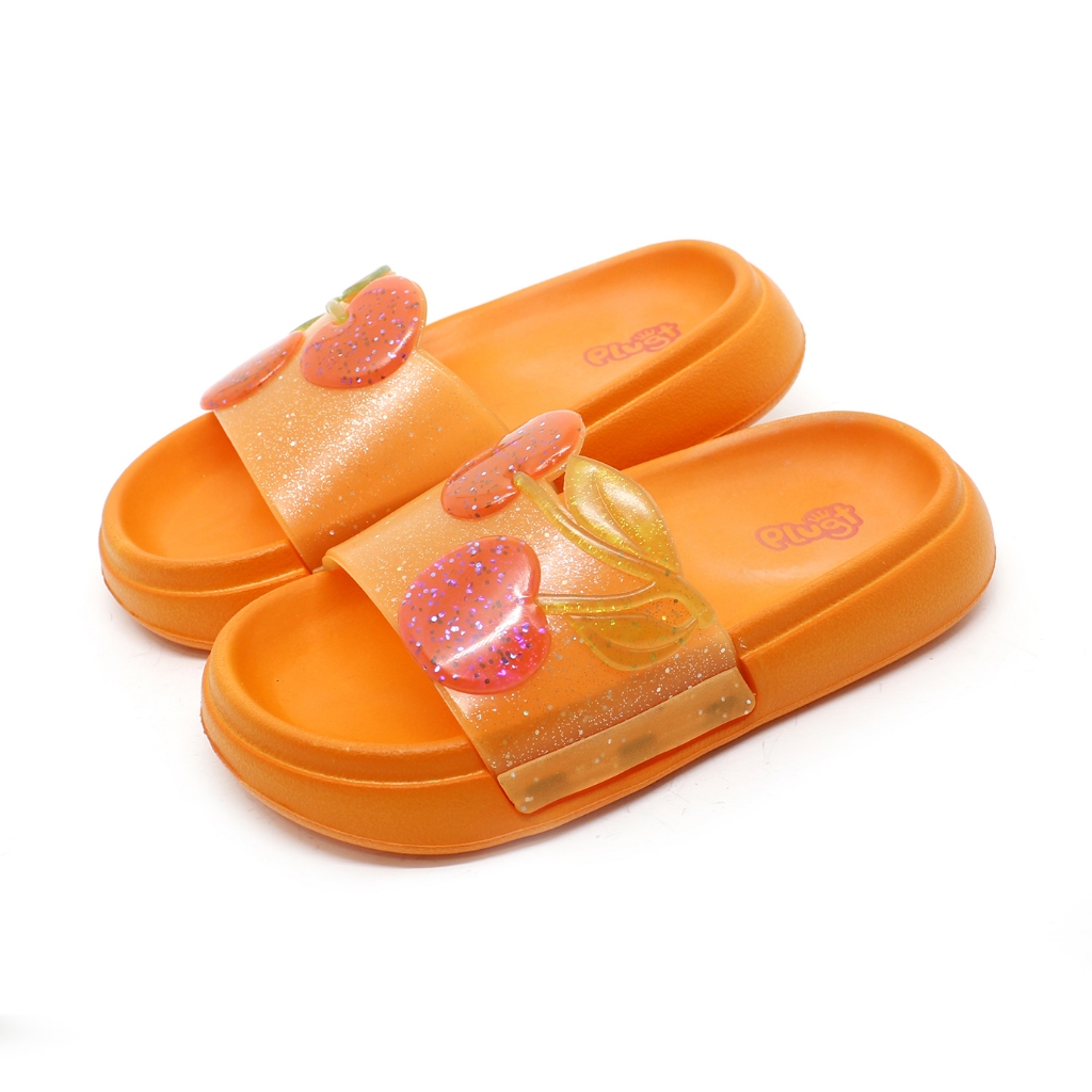 Chinelo Slide Nuvem Infantil Plugt Menina Floquinho Cereja Brilhante Laranja
