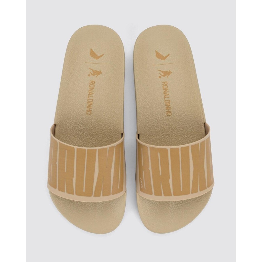 No ritmo da bola e do lifestyle urbano, o Chinelo Slide R10 Rider chega para mostrar que o jogo também se ganha no estilo. Essa collab com Ronaldinho Gaúcho apresenta duas versões cheias de personalidade: uma com estampa “Bruxo” no cabedal, e outra mais clean e premium, com cabedal liso e pin metalizado com a silhueta icônica de R10. Ambas as opções contam com assinatura do craque na palmilha, garantindo autenticidade nos mínimos detalhes. Confortável, versátil e cheio de atitude, o Slide R10 é feito para quem leva o futebol como parte da vida.