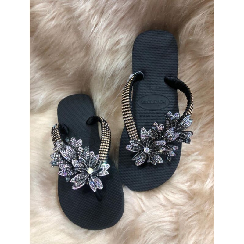 chinelos havaianas originais customizadas com flor tripla.
