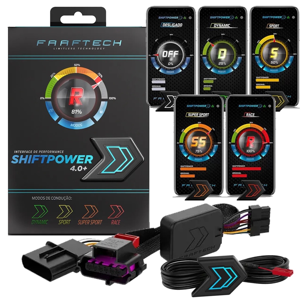 ** TEMOS OS MÓDULOS COMPATÍVEIS COM QUASE TODOS OS CARROS DO MERCADO (Porém nem todos estão no anúncio) - Em caso de dúvida contate a gente e diga o seu carro, te informaremos qual será o ideal para você ** Por que adquirir este produto com a Loja do Som e Acessórios? • Todos os produtos à pronta entrega • Produtos de qualidade garantida • Equipe de atendimento especializada • Envio em 24 horas após o pagamento • Compra com segurança e credibilidade • No mercado há mais de 10 anos • Produtos com garantia e nota fiscal Experimente a sensação de dirigir um novo carro. Apresentamos o Módulo de Aceleração Shiftpower 4.0+ - da Faaftech. A função dele é eliminar o atraso de aceleração do pedal e alterar seus diversos modos de condução. — A personalização é feita através de um aplicativo para iOs ou Android - e também por um botão no painel. [CARACTERÍSTICAS] • Total personalização com mais de 300 mapas de Performance • Opção de desativação do modo Manobrista e Bloqueio por presença • Configuração de limites para o modo motorista • Central com Bluetooth Integrado - Controle por aplicativo • Cabos discretos, resistentes e modernos com proteção por malha de Nylon [MODOS DE CONDUÇÃO] • Dynamic - Resposta suave, ganho confortável de aceleração. Indicado para uso na cidade • Sport - Resposta média-rápida. Indicado para uso na cidade • Super Sport - Resposta rápida com tocada mais esportiva. Indicado para uso em rodovias • Race - Resposta extremamente agressiva. Indicado para uso em rodovias, ideal para ultrapassagens rápidas • Modo Manobrista - Limita o pedal em 30% (podendo ser ajustado entre 15 e 45%) • Modo Bloqueio - Funciona como um dispositivo Anti-Furto, anulando a resposta total do acelerador [CONTEÚDO DA EMBALAGEM] • 1 Módulo de Aceleração Shiftpower 6.2 FaafTech • 1 Guia de Instalação • 1 Chicote para instalação IMPORTANTE: A Loja do Som e Acessórios recomenda que a instalação seja feita por profissional especializado e não se responsabiliza pelo mau uso do produto. [DÚVIDAS FREQUENTES] • Como funciona a garantia? R: Nossos produtos têm uma etiqueta de garantia para nosso controle interno, com essa etiqueta verificamos se o produto é nosso mesmo, portanto NÃO tire a etiqueta do produto. • O produto está disponível a pronta entrega? R: Sim, todos os nossos produtos estão no nosso estoque preparado para ser embalado e enviado pra você! • Caso haja qualquer dúvida sobre o seu pedido/produto nos envie uma mensagem, estaremos à sua disposição.