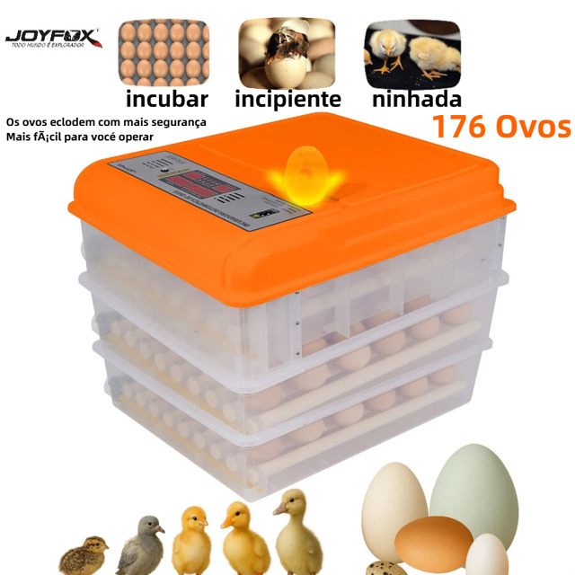Observação: estão disponíveis dois tamanhos. Caso você esteja incubando um número maior de ovos, recomendamos a compra do tamanho maior.Observação: estão disponíveis dois tamanhos. Caso você esteja incubando um número maior de ovos, recomendamos a compra do tamanho maior. Observação: estão disponíveis dois tamanhos. Caso você esteja incubando um número maior de ovos, recomendamos a compra do tamanho maior. A incubadora automática Joyfox tem capacidade para 1 a 176 ovos. Esta pequena incubadora é uma opção econômica e eficiente para a criação de aves em pequena escala. Possui diversas funções que contribuem para o sucesso da eclosão. Adequada para todos os tipos de ovos. A incubadora digital totalmente automática é adequada para todos os tipos de ovos, como ovos de galinha, pato, ganso, codorna e outras aves ou répteis, atendendo assim às diversas necessidades dos criadores de aves. Viragem automática dos ovos. A incubadora possui um cronômetro regressivo no visor que mostra com precisão o horário da próxima virada dos ovos. Incubação com um clique. Oferecemos cinco modos de incubação para galinhas, patos, gansos, pombos e temperatura constante. Os modos ajustam automaticamente a temperatura de acordo com o dia, sem a necessidade de configurações manuais. O painel LCD simples e intuitivo também inclui um visor de monitoramento de temperatura e umidade com configurações ajustáveis. Sua operação é fácil de entender, prática e simples. Design com rodízios. A distância entre os eixos é ajustável, adaptando-se a diferentes tipos de ovos. Rotação de rolos de 360°, engrenagens independentes e duráveis. Equipada com luz para os ovos. Nossas incubadoras possuem um observador de ovos de alta definição para selecionar ovos fertilizados e monitorar o desenvolvimento embrionário. Eficiência energética e responsabilidade ambiental. Nossas incubadoras são projetadas com tecnologia de economia de energia para minimizar o consumo durante a incubação, contribuindo assim para a proteção ambiental em sua casa. Especificações do produto: Voltagem: 220V (bivolt) Construção: Plástico durável e desmontável, fácil de limpar com um pano úmido Capacidade: 176 ovos Controle de temperatura: Automático/manual Controle de umidade: Automático/manual