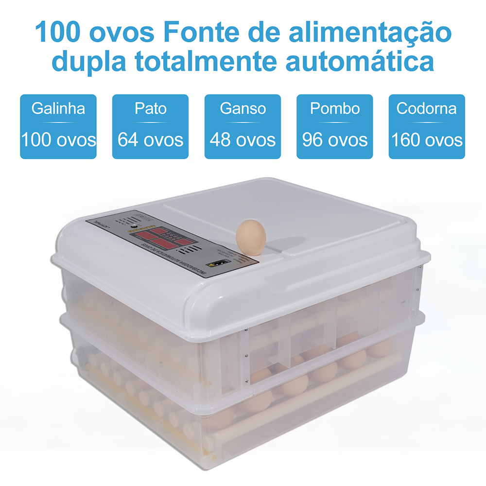 Chocadeira Incubadora Automática 100 -120 Ovos Rolagem Com Ovoscópio 127V 220V Chocadeira Elétrica