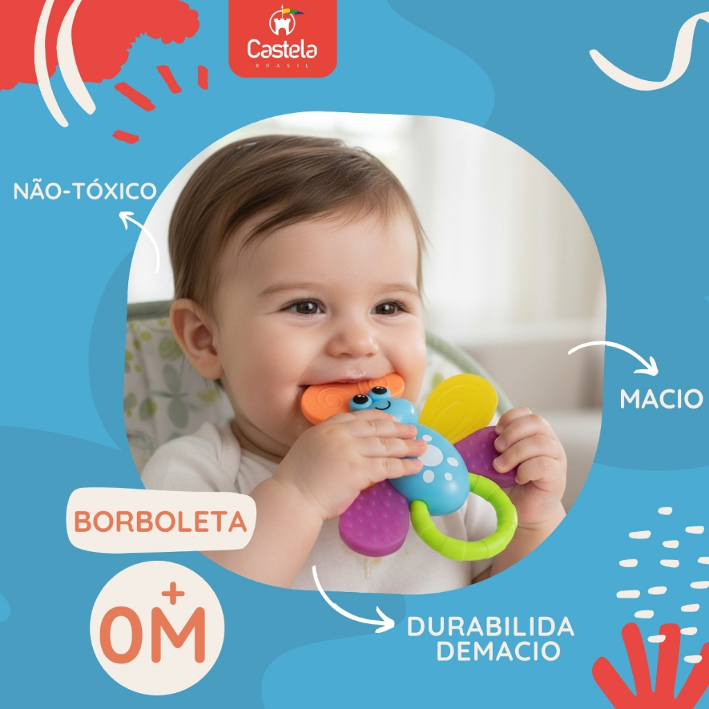 Chocalho Animal Borboleta Mordedor Divertido Bebe Castela