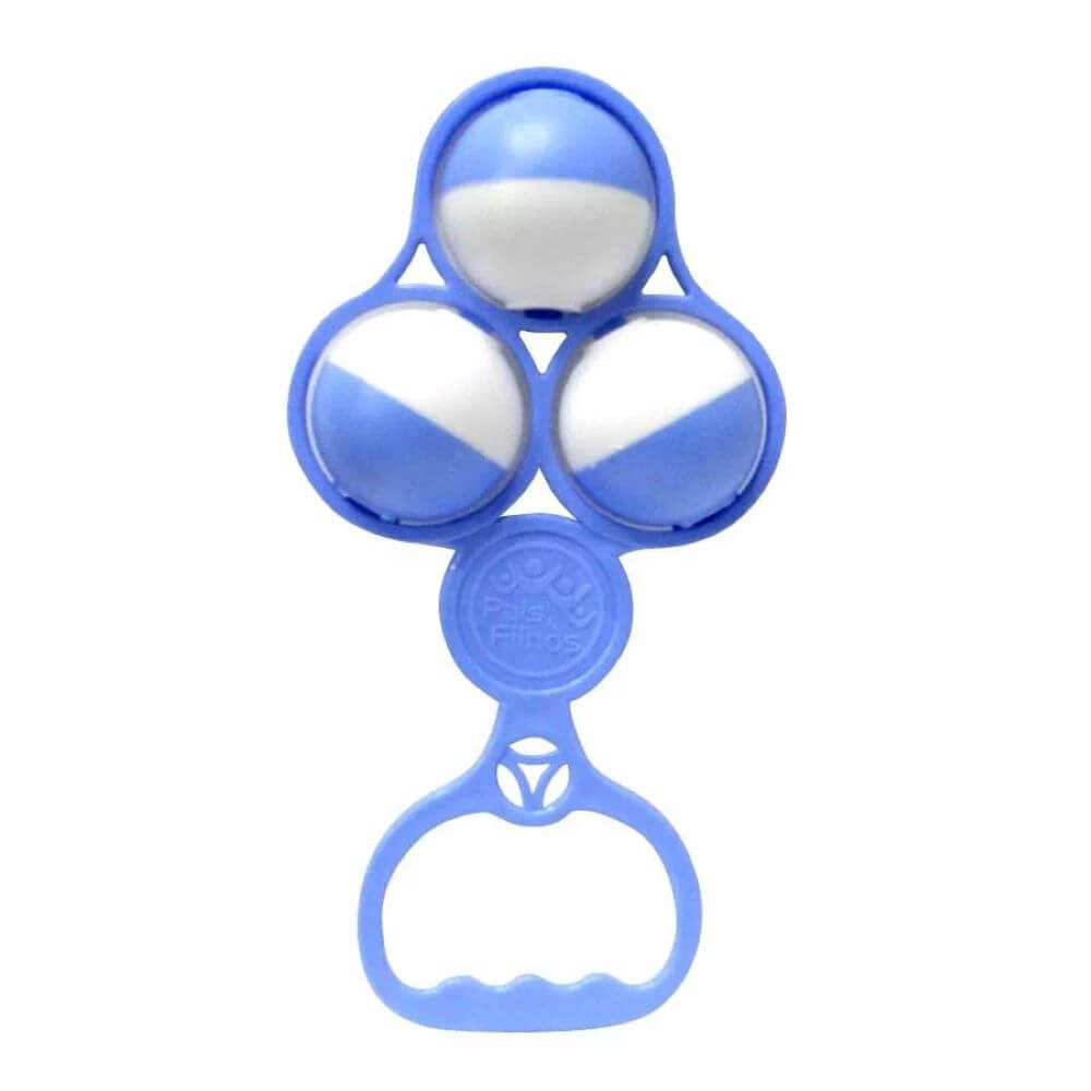 Chocalho de Mão Bola Tripla Azul – Pais & Filhos Proporcione diversão e estímulo sensorial para o seu bebê com o Chocalho Bola Tripla Azul da Pais & Filhos! Com design ergonômico e seguro, esse chocalho é ideal para as primeiras descobertas do bebê, estimulando a coordenação motora, o tato e a audição. Fabricado em material resistente e leve, ele conta com três bolas giratórias que emitem som suave ao serem agitadas, além de um cabo anatômico que se encaixa perfeitamente nas pequenas mãos dos bebês. Características: Indicado para bebês a partir de 3 meses Três bolas giratórias com som leve e envolvente Estimula coordenação motora e percepção auditiva Material plástico atóxico e de alta qualidade Design anatômico e fácil de segurar Marca: Pais & Filhos Cor: Azul com branco Ideal para presentear, levar em passeios ou deixar o momento do brincar ainda mais divertido e seguro!