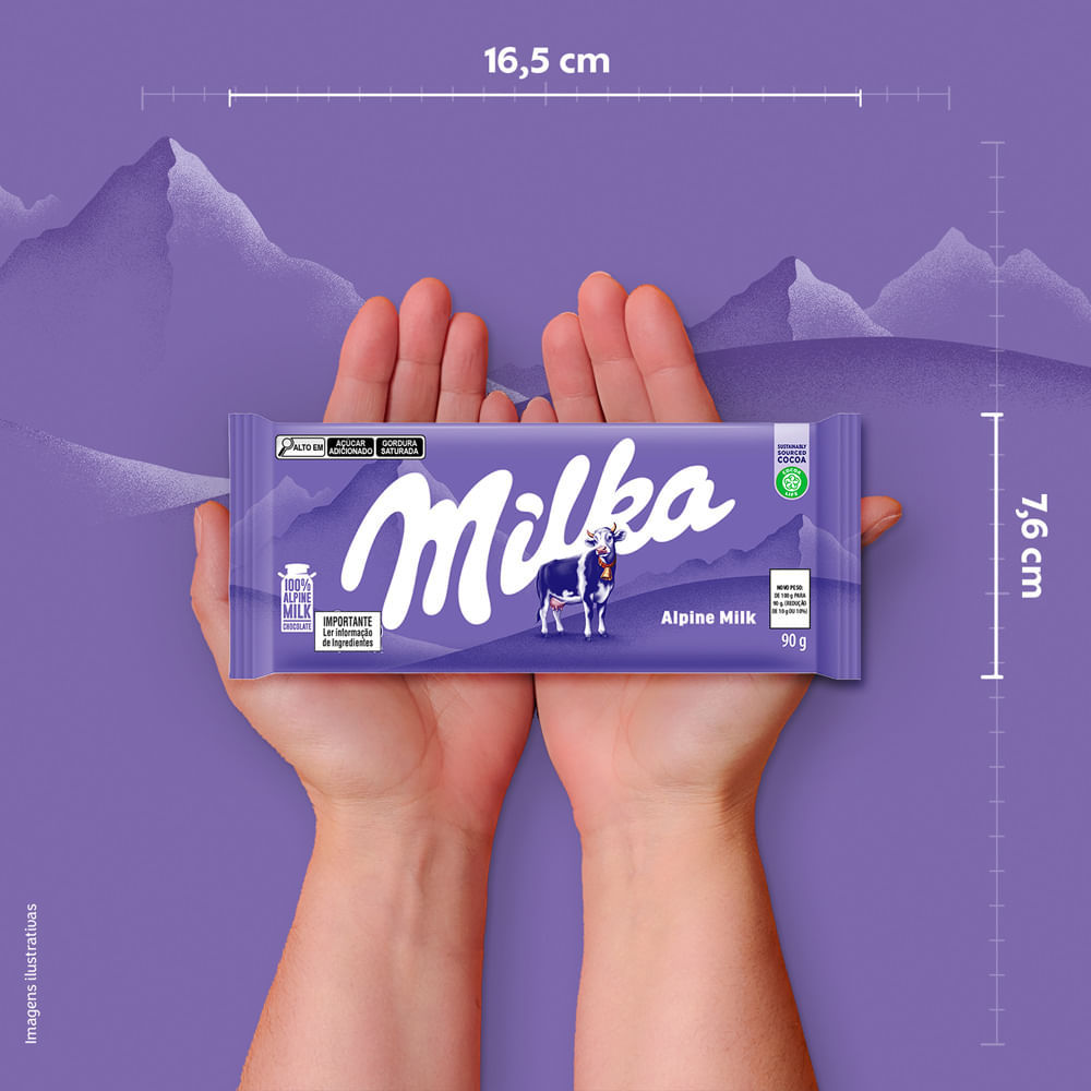 Chocolate ao Leite Milka com Leite Alpino - 90g Descubra o sabor autêntico do chocolate Milka, delicadamente elaborado com 100% leite alpino. Cada pedaço oferece uma experiência de sabor rica e cremos