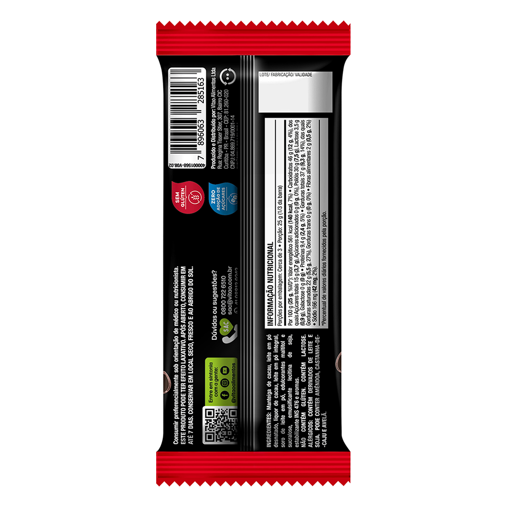 O Chocolate Vitao Marcante Zero oferece uma experiência única, com o sabor intenso e marcante do chocolate 39% cacau. Sua cremosidade e maciez são características que tornam cada pedaço ainda mais irresistível, proporcionando a suavidade dos chocolates que você já conhece e adora. Com zero adição de açúcares, ele combina perfeitamente com a textura cremosa, criando uma experiência sensorial memorável. Ao derreter na boca, o chocolate deixa um gosto de quero mais, tornando impossível comer apenas um quadradinho. Ideal para quem busca uma opção saudável, sem comprometer a dieta. INGREDIENTES: Manteiga de cacau, leite em pó desnatado, liquor de cacau, leite em pó integral, soro de leite em pó, edulcorantes maltitol e sucralose, emulsificante lecitina de soja, estabilizante INS 476 e aromas. ALÉRGICOS: CONTÉM DERIVADOS DE LEITE E SOJA. PODE CONTER AMÊNDOA, CASTANHA-DE-CAJU E AVELÃ. NÃO CONTÉM GLÚTEN. CONTÉM LACTOSE. SEM GLÚTEN, ZERO ADIÇÃO DE AÇÚCARES.
