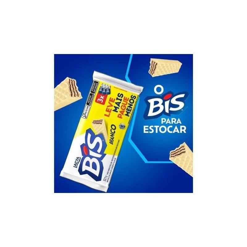 Descubra a delícia do Bis sabor Chocolate Branco e desfrute de momentos de puro prazer. Com um irresistível sabor de chocolate, essa caixa de Bis é perfeita para quem busca economia e não consegue comer só um.Leve mais e pague menos com o Kit 3 Caixas de Bis sabor Chocolate Branco, uma opção econômica para os amantes desse delicioso wafer recheado. Com essa caixa de Bis, você terá à disposição uma quantidade generosa de wafers com cobertura de chocolate, garantindo momentos deliciosos a qualquer hora do dia.O Bis sabor Chocolate Branco é reconhecido pela sua cobertura de chocolate e recheio cremoso, que são a combinação ideal para oferecer uma experiência única de sabor. A crocância do wafer se equilibra com a suavidade do recheio, criando uma harmonia de texturas sensacionais.Além do sabor incrível, o Bis sabor Chocolate Branco também proporciona praticidade e conveniência. O Kit com 3 caixas traz 48 unidades de Bis sabor Chocolate Branco embalados individualmente, facilitando o consumo e permitindo que você compartilhe com amigos e familiares. É a opção perfeita para levar em viagens, passeios ou para ter sempre à mão em casa.Ao escolher o Bis sabor Chocolate Branco Multipack, você estará garantindo momentos de satisfação e qualidade. Produzido pela Lacta, uma marca renomada no universo dos chocolates, o Bis é sinônimo de sabor e alegria.