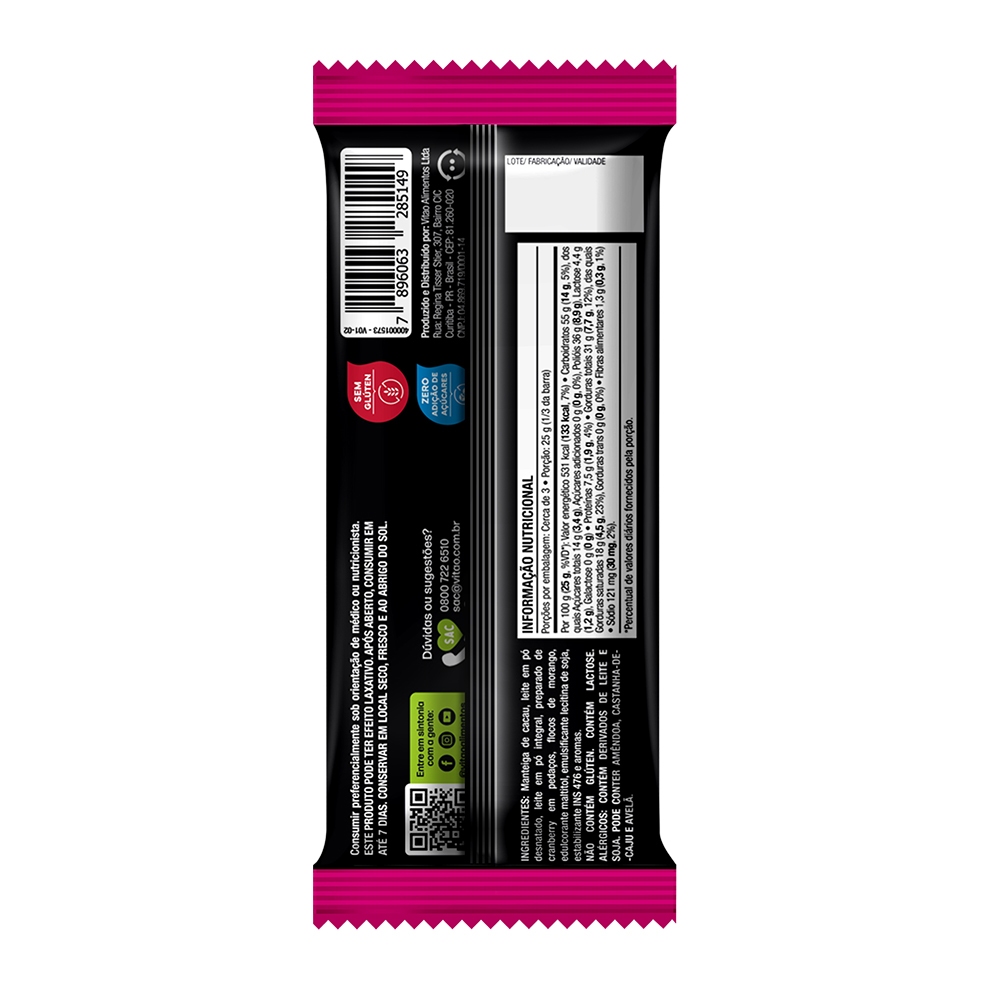 O Chocolate Vitao Marcante Branco Morango e Cranberry é uma combinação perfeita para quem aprecia sabores únicos. Sua combinação única de chocolate branco cremoso com o toque doce e levemente ácido do morango e do cranberry cria uma experiência irresistível, tornando cada pedaço uma verdadeira explosão de sabor. INGREDIENTES: Manteiga de cacau, leite em pó desnatado, leite em pó integral, preparado de cranberry em pedaços, flocos de morango, edulcorante maltitol, emulsificante lecitina de soja, estabilizante INS 476 e aromas. ALÉRGICOS: CONTÉM DERIVADOS DE LEITE E SOJA. PODE CONTER AMÊNDOA, CASTANHA-DE-CAJU E AVELÃ. NÃO CONTÉM GLÚTEN. CONTÉM LACTOSE. SEM GLÚTEN, ZERO ADIÇÃO DE AÇÚCARES.