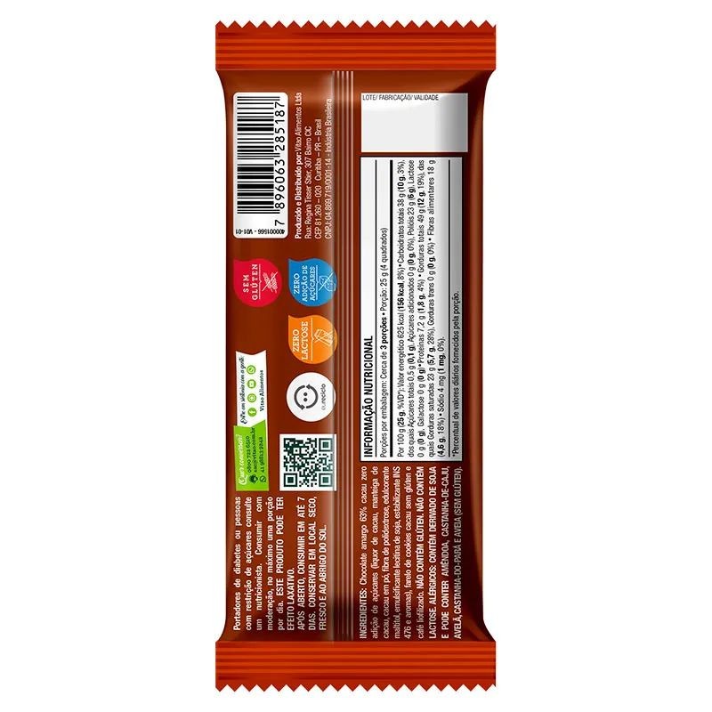 Apresentamos o Marcante Espresso, uma indulgência marcante para os amantes de café. Com sabor intenso e cremosidade incomparável, ele derrete suavemente na boca, proporcionando uma experiência única. Sem adição de açúcares, é uma opção deliciosa sem culpa. A combinação perfeita entre espresso e chocolate cremoso desperta os sentidos e deixa um gostinho de quero mais. Seja para desfrutar sozinho ou compartilhar, cada quadradinho do Chocolate Vitao Espresso é uma explosão de prazer. Experimente essa irresistível criação e deleite-se com momentos de puro prazer e delícia. Ingredientes Chocolate amargo 63% cacau zero adição de açúcares (liquor de cacau, manteiga de cacau, cacau em pó, fibra de polidextrose, edulcorante maltitol, emulsificante lecitina de soja, estabilizante INS 476 e aromas), farelo de cookies cacau sem glúten e café liofilizado. *Percentual de valores diários fornecidos pela porção Alérgicos CONTÉM DERIVADO DE SOJA E PODE CONTER AMÊNDOA, CASTANHA-DE-CAJU, AVELÃ, CASTANHA-DO-PARÁ E AVEIA (SEM GLÚTEN). Alérgicos Não Contém Sem açúcarSem glútenSem lactose