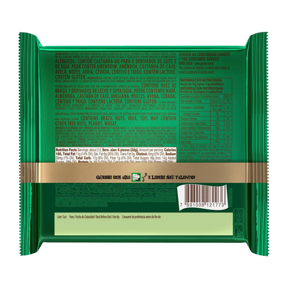 Chocolate Garoto Talento ao Leite com Castanha do Pará 85g