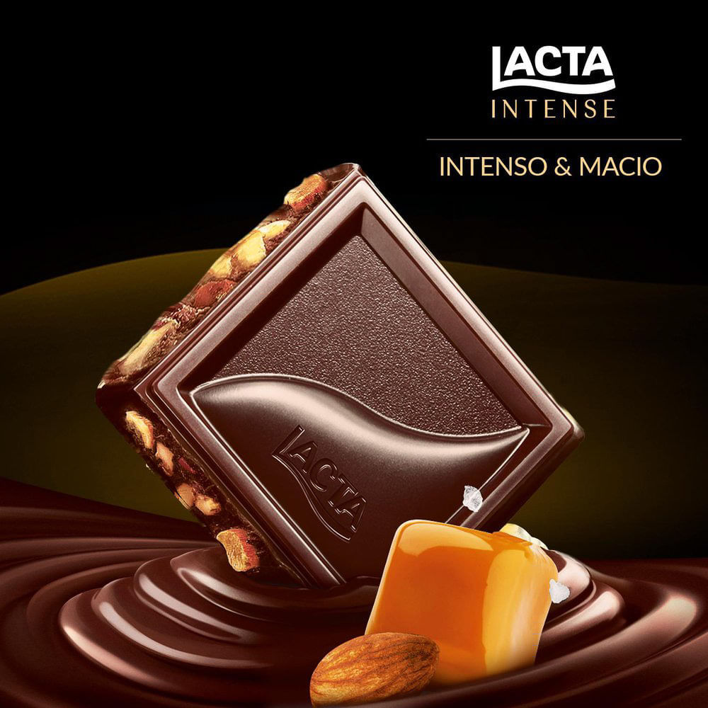 Chocolate Lacta Intense Nuts 40% Cacau Amêndoas e Caramelo Salgado Compre agora Chocolate Meio Amargo Lacta Intense Amêndoas e Caramelo Salgado 40% Cacau Experimente o equilíbrio de sabores da intensi