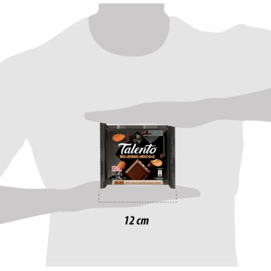 Delicioso, sofisticado, elegante, irresistível... Talento Meio Amargo Amêndoas é um delicioso chocolate Garoto com alto teor de cacau e com pedaços de amêndoas, deixando seu sabor ainda mais intenso. Ingredientes: açúcar, massa de cacau, amêndoas, gordura vegetal, leite em pó, manteiga de cacau, emulsificantes lecitina de soja e poliglicerol polirricinoleato e aromatizante PODE CONTER AMENDOIM, CASTANHA-DE-CAJU, CASTANHA-DO-PARÁ, AVELÃ, NOZES, AVEIA, CEVADA, CENTEIO E TRIGO. CONTÉM LACTOSE. CONTÉM GLÚTEN.