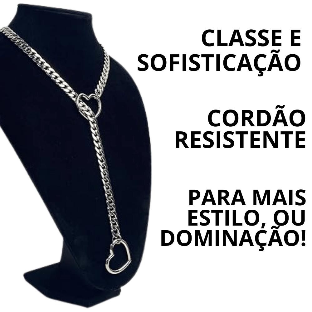 Coleira de Corrente Confeccionada em corrente com Argola em coração. Possui corrente metálica - permitindo por uma de sua preferência. É ideal para fantasias de submissão e entrega, traga seu amor na coleira! Ideal para montar looks Incriveis! PRODUTO SEM CAIXA Modo de uso: Solte seu lado sadomasoquista. Material: Ferro Medidas: Coleira 64,0 cm de comprimento (medidas aproximadas). Higienização: Guarde na embalagem original. Não compartilhar e não expor a temperatura superior a 50°C. Cuidados: Higienize sempre antes e após o uso. Mantenha fora do alcance de crianças. Manter ao abrigo do calor e luz excessiva. Após o uso, guardar em uma embalagem de plástico, não enrole em papel.