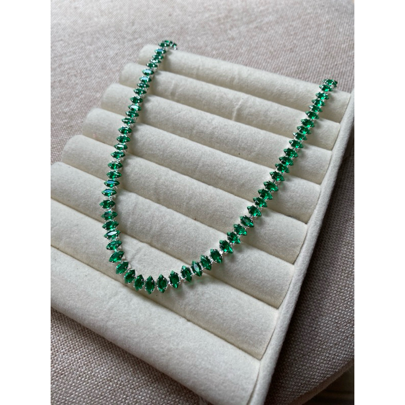 Choker + Brinco Riviera Navete Verde Folheada Prata 925