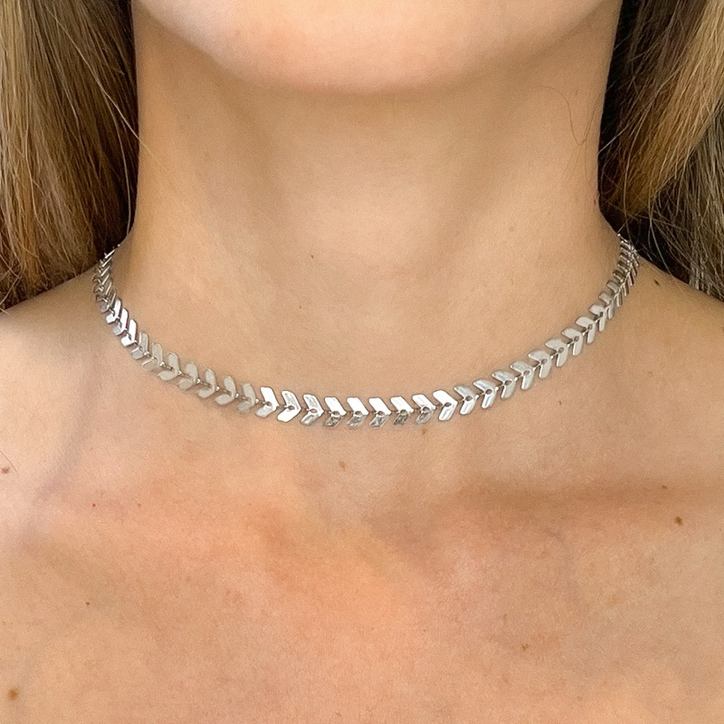 Choker Colar Aço inoxidável Prata Folha não escurece
