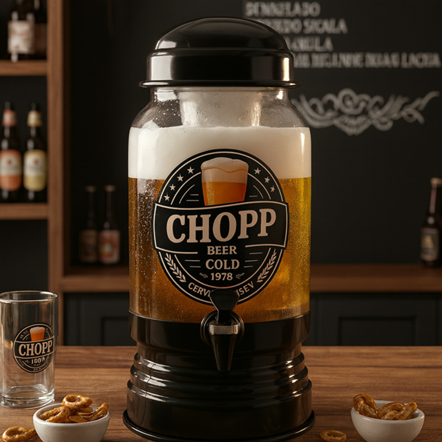 📣 Chopeira de Vidro 3L com Dispenser de Alumínio – Torre de Chopp / Cervejeira Gelada para Festa e Churrasco A perfeita chopeira de vidro de 3 litros para levar o seu happy hour, churrasco, festa ou bar em casa para outro nível! 🍻 ***IMPORTANTE*** Não é recomendado colocar o dispenser diretamente no congelador, ele poderá rachar. Adicionar apenas cubos de gelo dentro do dispenser. ✔️ Capacidade 3 Litros – ideal para servir cerveja, chopp, sucos, refrigerantes e drinks gelados. ✔️ Dispenser de Alumínio para Gelo – mantém sua bebida sempre gelada por mais tempo, sem perder o sabor. ✔️ Torre de Chopp / Cervejeira de Vidro com acabamento resistente, elegante e fácil de limpar. ✔️ Design Transparente Premium – acompanhe o nível da bebida enquanto serve. ✔️ Base, Tampa e Dispenser em Alumínio de Alta Qualidade – durabilidade superior e visual sofisticado. ✔️ Porta - gelo interno desmontável – fácil de montar e higienizar. ✔️ Multifuncional – perfeito como chopeira portátil, dispenser de bebidas, torre de cerveja e suqueira para festas. 🍺 Perfeito para: ✔️ Churrasco, festas, happy hour, bar casa (home bar) ✔️ Cerveja gelada, chopp, suco, água aromatizada ✔️ Presentes para amigos, dia dos pais, festas de aniversário e eventos 📏 Especificação: - Altura: 36cm - Largura Total (Base): 16,5 cm - Material do Recipiente: Vidro - Material Tampa, Base e Porta Gelo: Alumínio. - Capacidade: 3 litros