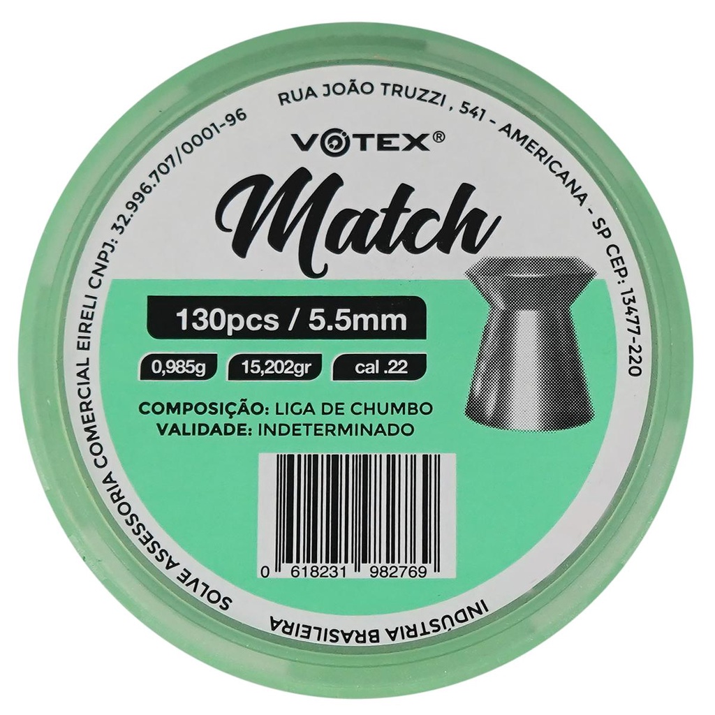 Chumbinho 5.5 Votex Match Munição .22 Lata 130 Unidades