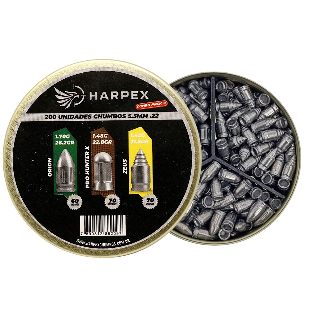 Chumbinho Harpex Combo Pack 3 - Órion, Pro Hunter X e Zeus 5.5mm (.22) - 200un