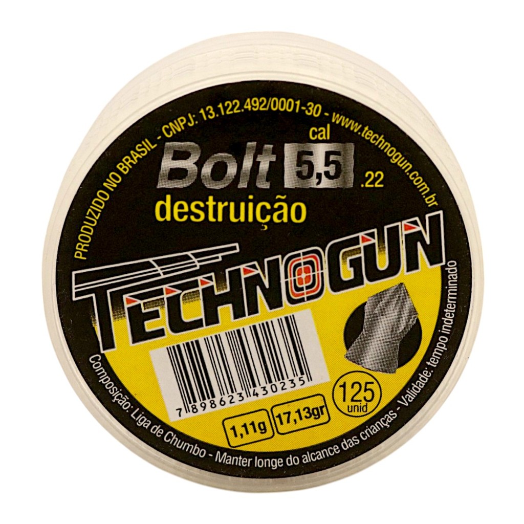 | Chumbinho Technogun Bolt Destruição Cal. 5.5mm (.22) - 125un este produto | R$ 43,89 | — | 5.0/5 | — |