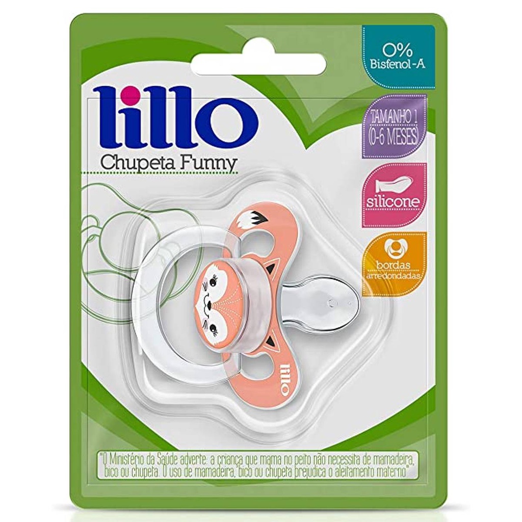 Chupeta Bico de Silicone Funny Animais 0m+ Rosa - Lillo A Chupeta Funny Animais Lillo apresenta uma decoração encantadora de raposinha ,com formato de escudo com bordas arredondadas e grandes canais de ventilação. Possui Argola que Permite o uso de Prendedores evitando perda. Seu bico é em silicone macio e flexível e é livre de BPA. O MINISTÉRIO DA SAÚDE ADVERTE: A CRIANÇA QUE MAMA NO PEITO NÃO NECESSITA DE MAMADEIRA, BICO OU CHUPETA. O USO DE MAMADEIRA, BICO OU CHUPETA PREJUDICA O ALEITAMENTO MATERNO. Principais Características: - Tamanho do Bico: Nº1 (0m+) - Bordas Arredondadas - Livre de BPA - Bico em Silicone Macio e Flexível - Decoração de Raposinha - Possui Argola que Permite o uso de Prendedores Especificações Técnicas: - Conteúdo da Embalagem: 1 Chupeta Funny Animais Rosa - Lillo - Composição/Material: Polipropileno e Silicone - Garantia: 90 Dias (Contra Defeito de Fabricação Pelo Fabricante) - Certificação: CE-PUR /IQB-000637 - Código do Fabricante: 627601 - EAN: 7896033204880 - Marca: Lillo Imagens meramente ilustrativas, as cores e estampas podem variar de acordo com o lote do fabricante.