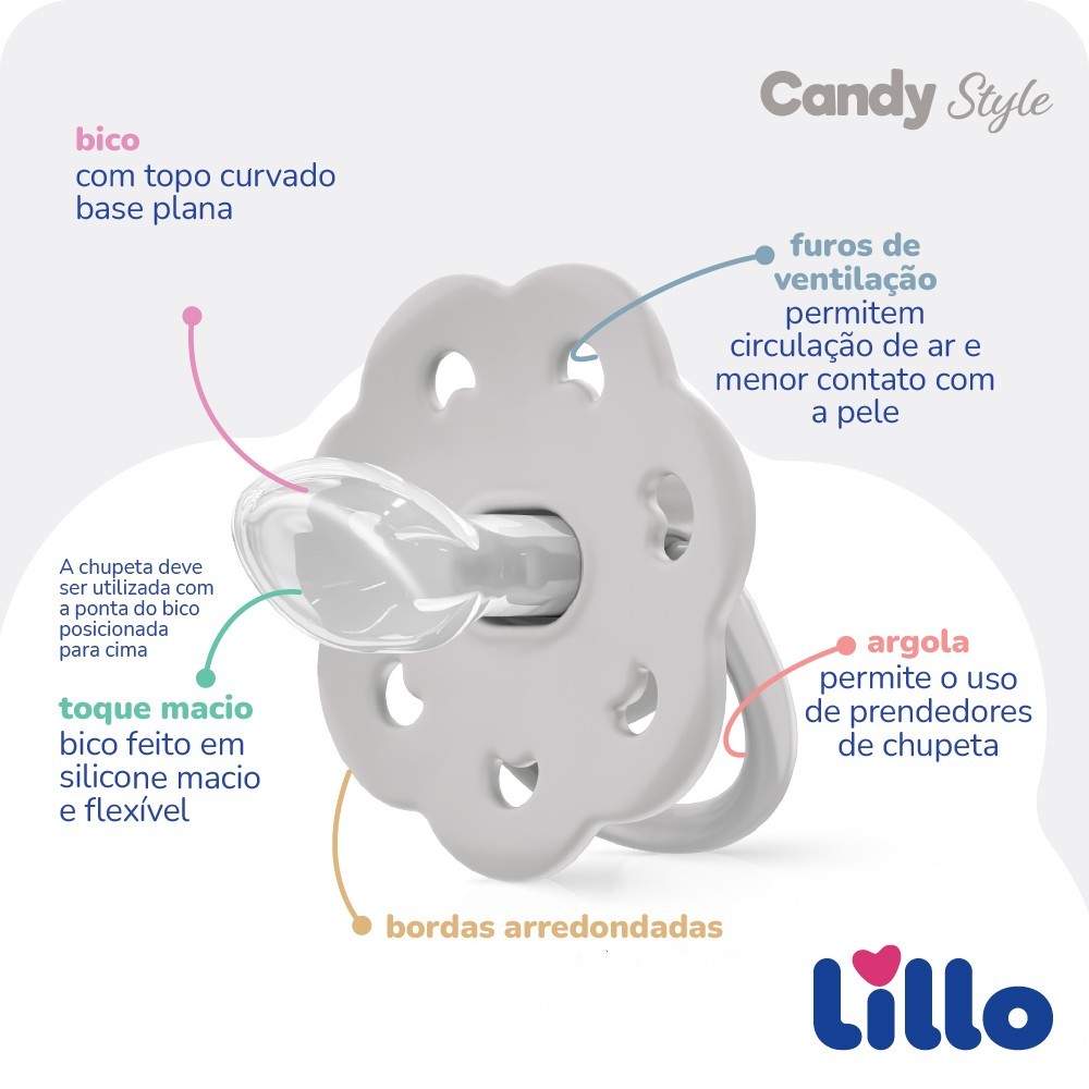 Chupeta com Bico em Silicone Candy 6m+ Neutral – Lillo