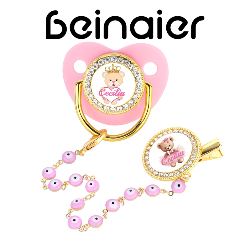 Chupeta para bebê rosa, personalizável com nome e foto do bebê, indicada para 0-6-18 meses