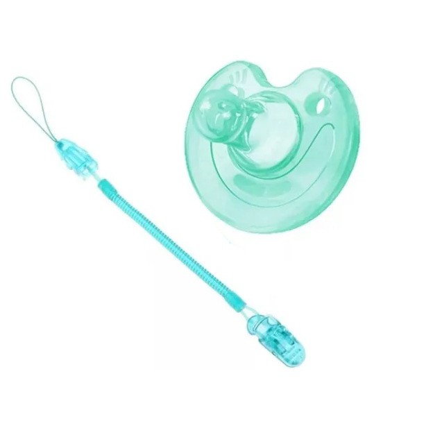 Chupeta Sorriso 100% silicone + Prendedor de chupeta modelo mola