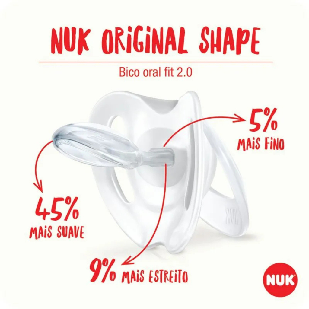 A Chupeta NUK Star Glow possui formato que contorna suavemente o rosto do bebê, sem cobrir o nariz, permitindo uma respiração mais confortável. Seu bico em silicone com tecnologia NUK Oral Fit 2.0 é 35% mais fino, 9% mais estreito e 45% mais suave, proporcionando sucção mais natural e confortável. O escudo com design moderno e ventilado permite maior circulação de ar, ajudando a proteger a pele sensível do bebê. Além disso, sua argola brilha no escuro, facilitando encontrar a chupeta durante a noite sem precisar acender a luz. Características - Bico Oral Fit 2.0 em silicone macio; - Indicado para +6 meses (Fase 2); - Argola que brilha no escuro; - Escudo com ventilação para maior conforto; - Desenho: Estrelinhas; - Livre de BPA. Observação Para ativar o efeito brilha no escuro, exponha a chupeta à luz por cerca de 5 minutos. A argola poderá brilhar por aproximadamente 30 minutos, dependendo da intensidade da luz.