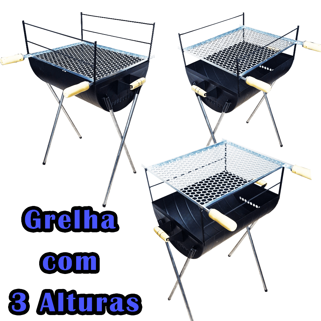Churrasqueira a Carvão Com Grelha em Aço reforçado Espetinho Grande Pés Removíveis
