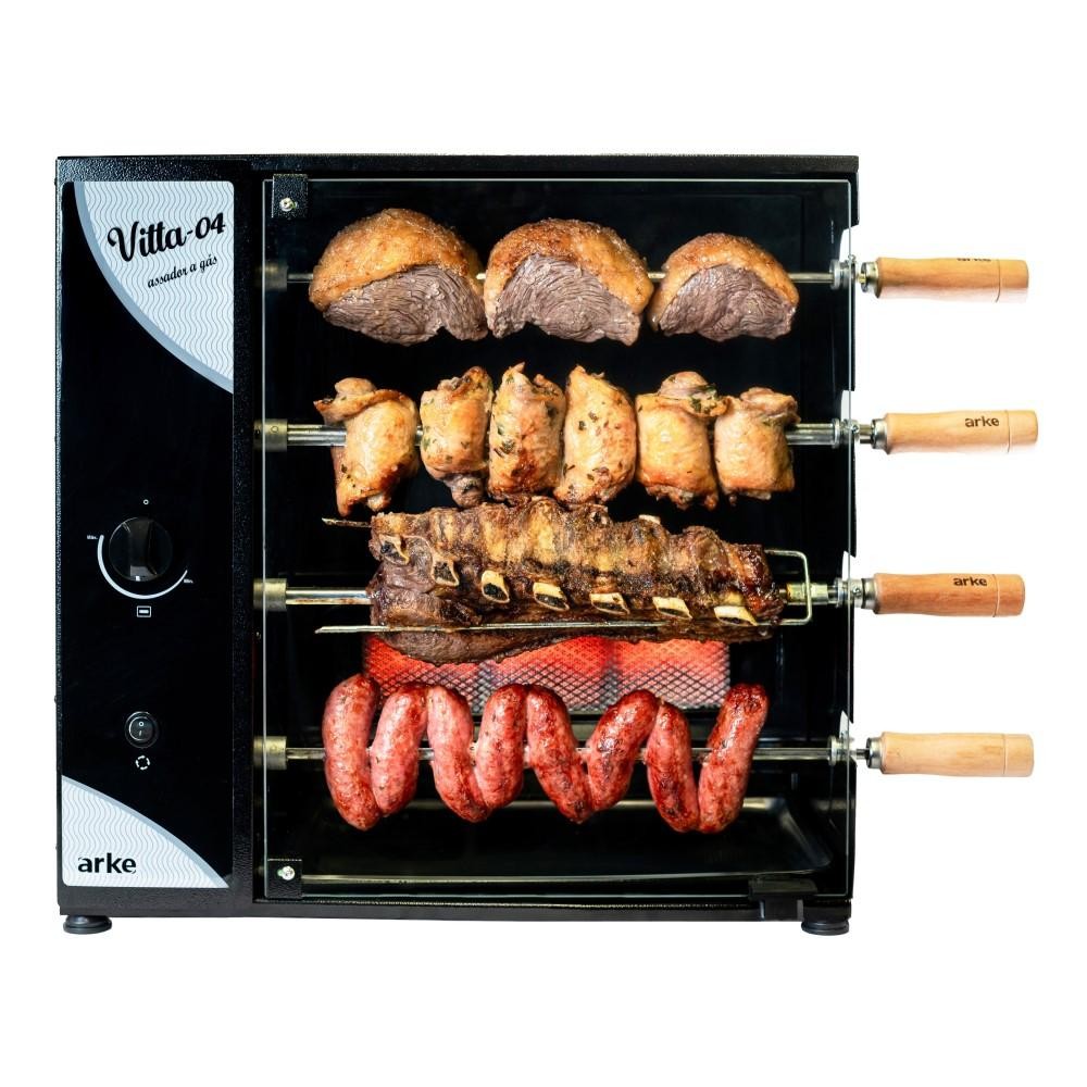 Churrasqueira a Gás GLP Rotativa Arke Vitta 4 Espetos 220V Preto