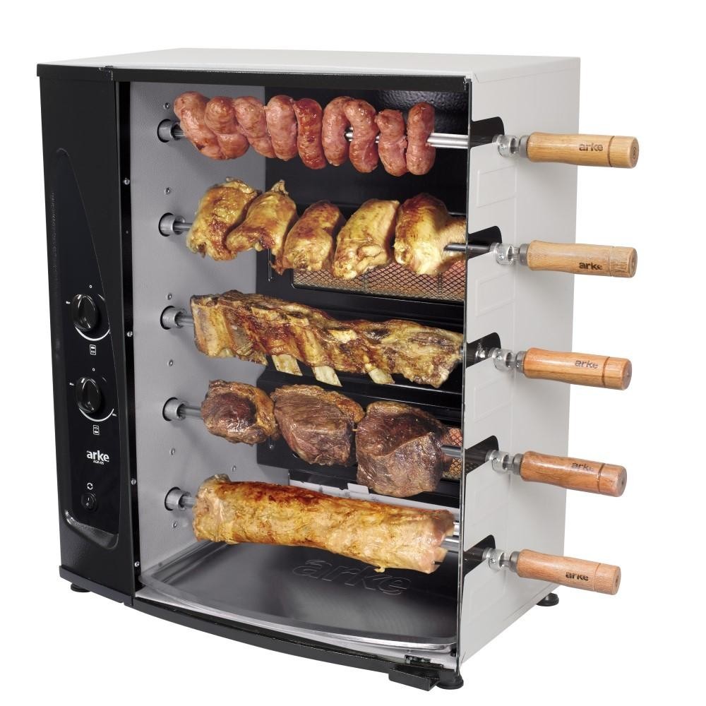 Churrasqueira a Gás Natural GN 5 Espetos Giratórios Bivolt Aço Arke