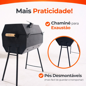 Churrasqueira Bafo Carvão Com Grelha e Pés 1,00 m de Altura em Aço Resistente e Robusta Espeteira