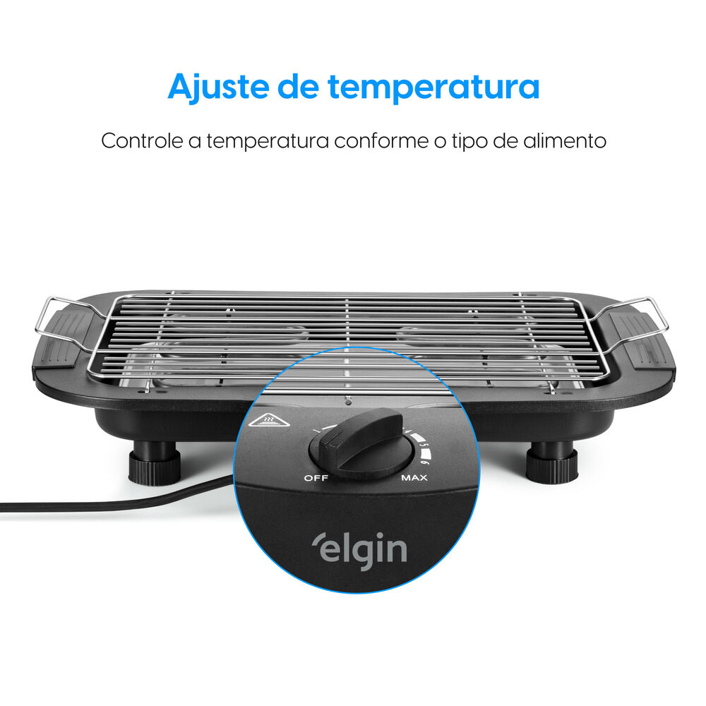Que tal um churrasco feito a qualquer momento, sem sujeira? Prepare petiscos, espetinhos, hambúrgueres ou grelhados fora ou dentro de casa com a Churrasqueira Elétrica BBQ Show Elgin. Ela tem Potência de 2.000W na voltagem 220V, o que proporciona mais eficiência na hora do preparo, grill amplo, indicação luminosa de funcionamento, termostato de controle de temperatura que possibilita temperatura variável da resistência. É portátil e compacta, garantindo praticidade para montar, usar, limpar, guardar e transportar. A Grelha, resistência e bandeja de resíduos são removíveis para facilitar na hora de limpar. Além disso, possui dois níveis de ajuste para altura do grill que permite ajustar conforme a sua necessidade. Para aumentar a segurança, tem base antiderrapantes e bandeja antifumaça evitando que a gordura queime e deixe ambiente cheio de fumaça. A Elgin oferece garantia expressa de 1 ano para você usar sua churrasqueira sem preocupação.