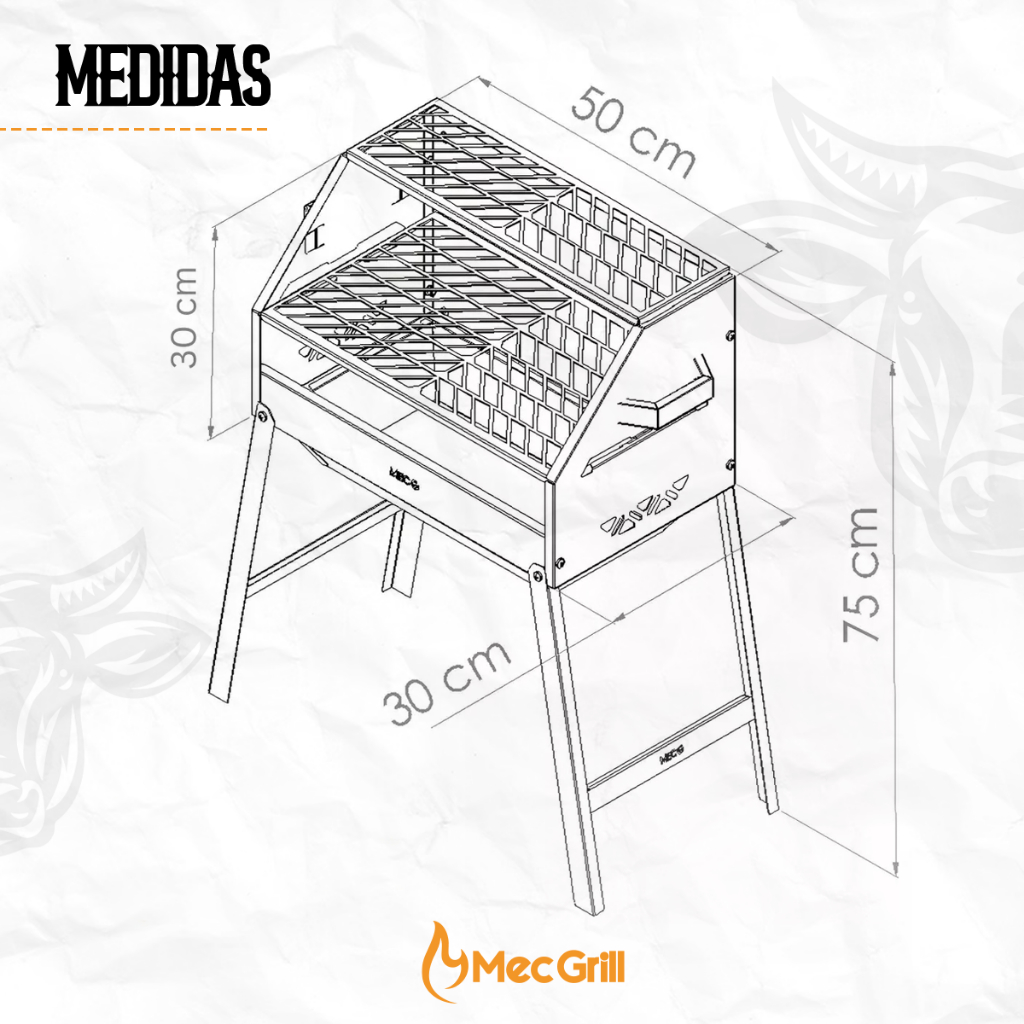 Churrasqueira de Aço Inox a Carvão Tamanho 50X30cm Portátil Desmontável Resistente Nelore Mec Grill