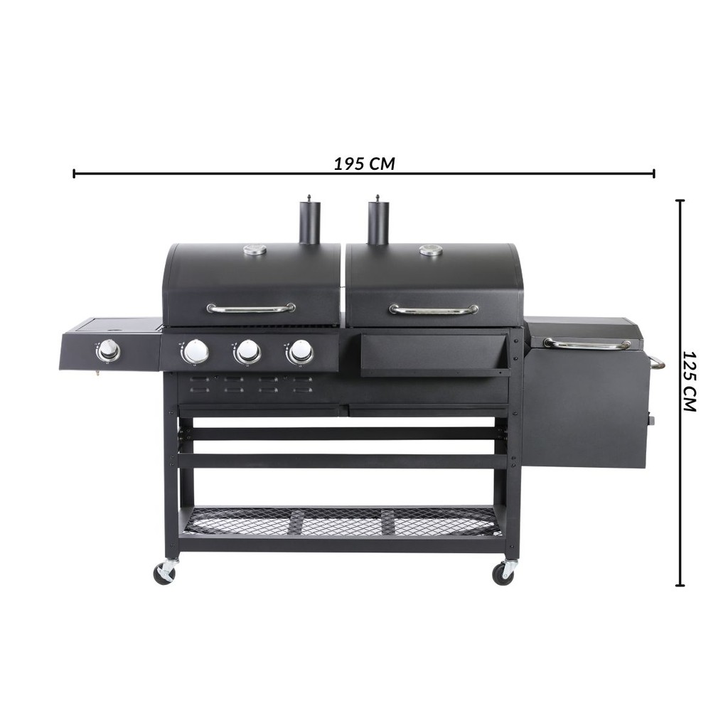 Churrasqueira Dupla 3 em 1 Gás Carvão e Defumador Lateral Portátil Completa para Churrasco Prática e Resistente