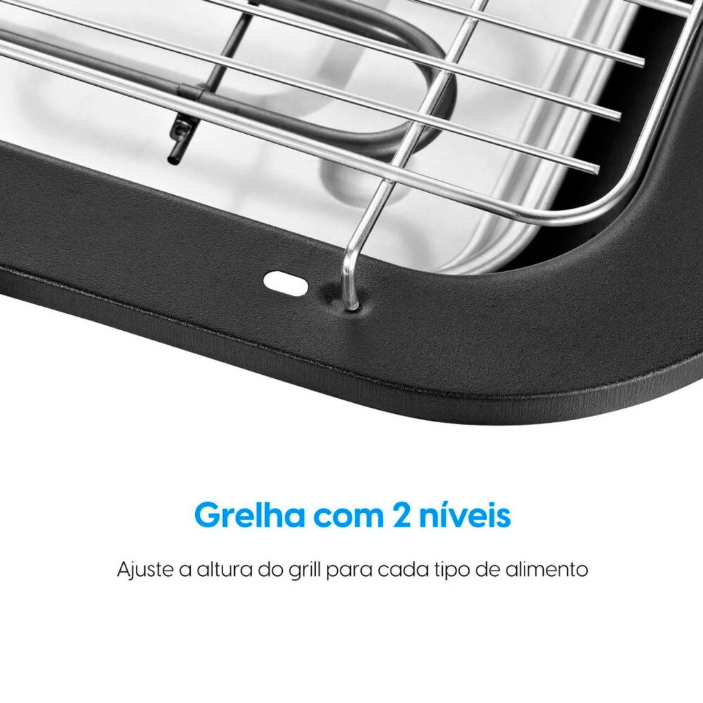 Que tal um churrasco feito a qualquer momento, sem sujeira? Prepare petiscos, espetinhos, hambúrgueres ou grelhados fora ou dentro de casa com a Churrasqueira Elétrica BBQ Show Elgin. Ela tem Potência de 1800W que proporciona mais eficiência na hora do preparo, grill amplo, indicação luminosa de funcionamento, termostato de controle de temperatura que possibilita temperatura variável da resistência. É portátil e compacta, garantindo praticidade para montar, usar, limpar, guardar e transportar. A Grelha, resistência e bandeja de resíduos são removíveis para facilitar na hora de limpar. Além disso, possui dois níveis de ajuste para altura do grill que permite ajustar conforme a sua necessidade. Para aumentar a segurança, tem base antiderrapantes e bandeja antifumaça evitando que o ambiente fique cheio de fumaça. Potência em watts: 1800 watts Fabricante: Elgin Número do modelo: 42CHU2001000 Dimensões do produto: 9,5 x 48 x 38 cm. 1,95 Quilogramas