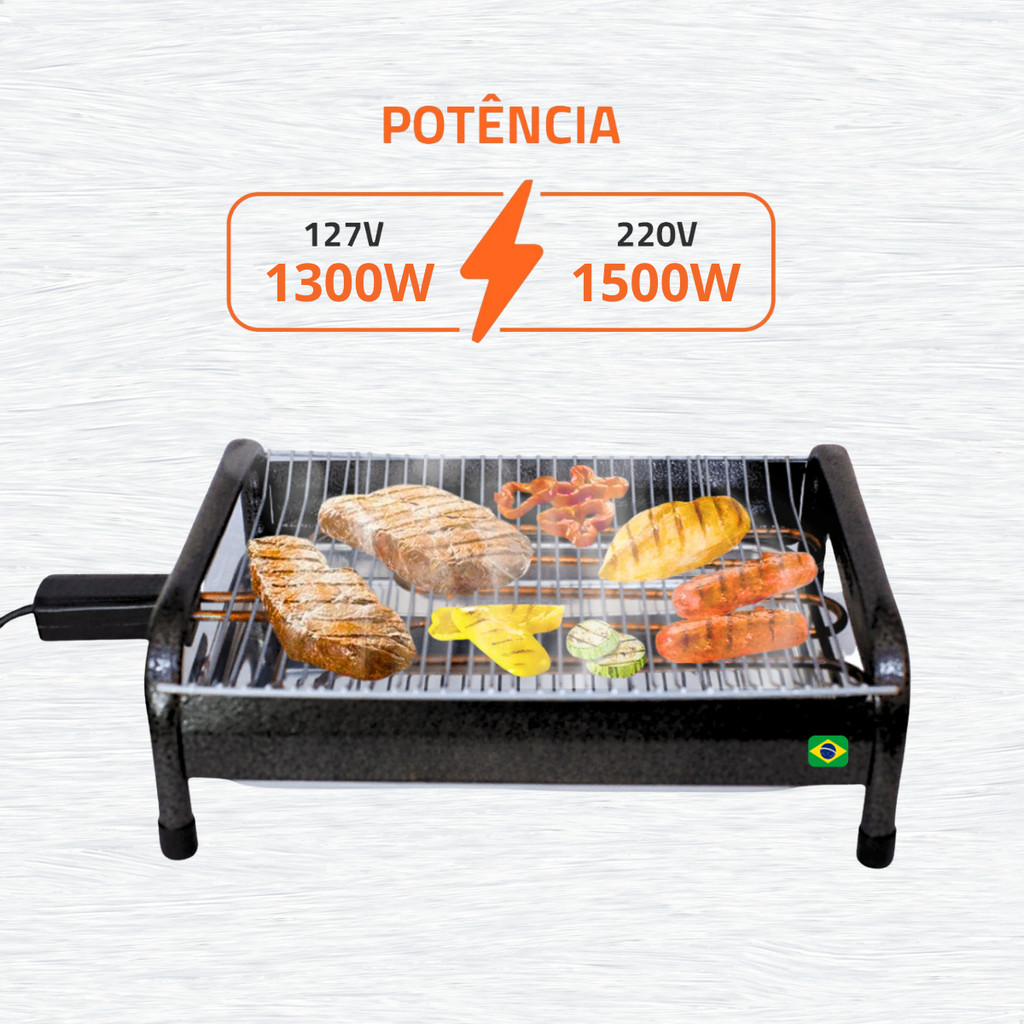 Churrasqueira Elétrica Top Grill II 127V e 220V, agora seus churrascos no conforto da sua casa! Desenvolvida com um formato compacto e com painel em acabamento inox, a sua churrasqueira Top Grill II é perfeita para ser usada aonde você quiser, seja dentro de casa ou na área externa. Potência: 220 V = 1600w 127V = 1600W MEDIDAS: Comprimento: 39 cm Largura: 29 cm Altura: 14 cm Peso: 1,5 kg Itens incluso(CHURRASQUEIRA): 1 Suporte com grelha 1 Recipiente para água 1 Resistência elétrica com cabo 1 Embalagem Itens incluso(RESISTÊNCIA): 1 Resistência elétrica com cabo Menor consumo de energia Não produz fumaça Bandeja removível coletora de resíduos e gordura Tamanho perfeito para cozinha e apartamento Mais rápida, 2 minutos para iniciar seu churrasco Mais econômica, consome apenas 1.6 kw/h. Não produz fumaça, sujeira e mais fácil de lavar Não resseca e nem altera o sabor do seu churrasco ANTES DE EFETUAR A COMPRA, VERIFIQUE SE É COMPATÍVEL A VOLTAGEM DO PRODUTO COM A SUA RESIDÊNCIA. SELECIONE A CHURRASQUEIRA OU APENAS A RESISTÊNCIA, VERIFIQUE A COMPATIBILIDADE DA RESISTÊNCIA Pensando no meio ambiente, a politica da nossa empresa mudou! Agora, enviaremos nossos produtos em suas embalagens originais. Visando a diminuição do impacto que o plastico causa na natureza. Todos juntos por essa causa.