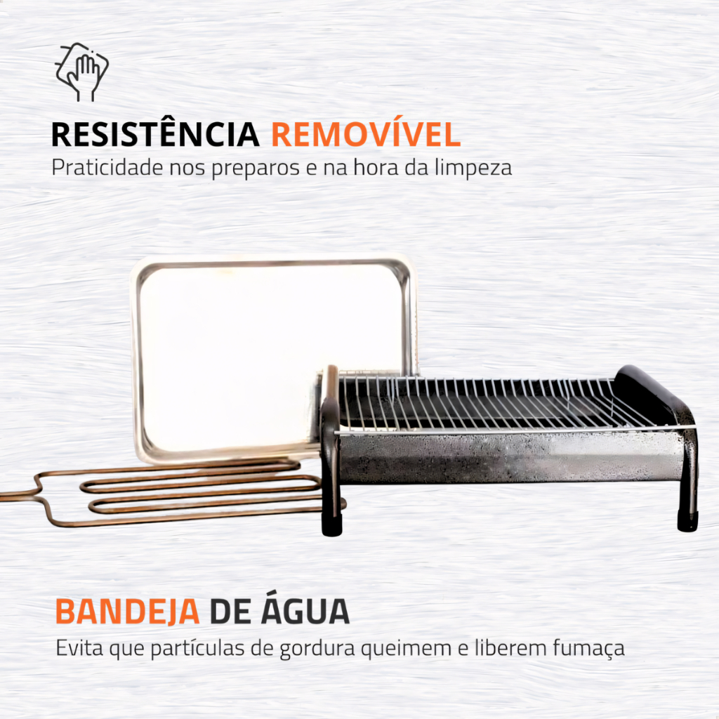 Churrasqueira Elétrica Portátil para Casa e Apartamento Ideal para quem busca praticidade e sabor no dia a dia! Características Principais: • Voltagem: Escolha entre 127V (1300W) ou 220V (1500W). • Compacta: Perfeita para cozinhas e apartamentos (39x29x14 cm). • Sem Fumaça: Churrasco limpo, sem sujeira ou fumaça. • Mais Rápida: Pronta em apenas 2 minutos. • Econômica: Consome só 1.6 kW/h. • Material Resistente: Produzida em aço inox, pesa apenas 1,5 kg. • Fácil de Limpar: Bandeja coletora removível para resíduos e gordura. Itens Inclusos: • 1 Suporte com grelha • 1 Recipiente para água • 1 Resistência elétrica com cabo Prática, limpa e compacta: tudo para um churrasco delicioso!