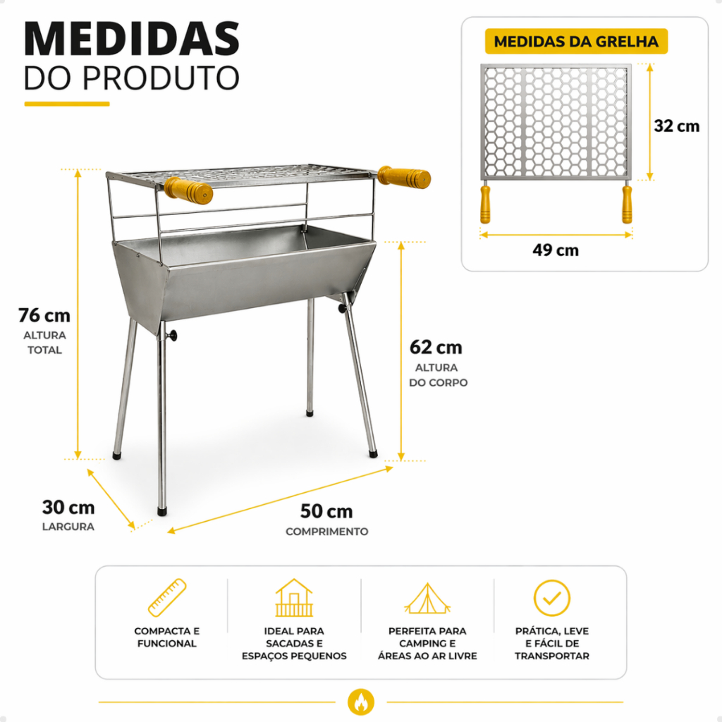 Churrasqueira Móvel Portátil Desmontável Com Grelha Chapa Galvanizada Espetinho Bitroom