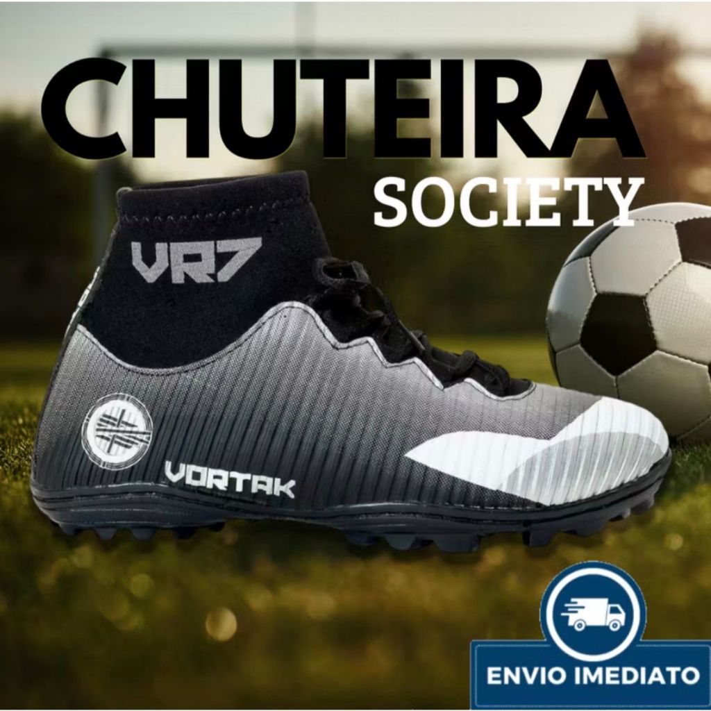 Chuteira Leve Masculina Para Campo Sintético Society com Aderência e Estabilidade Envio Imediato