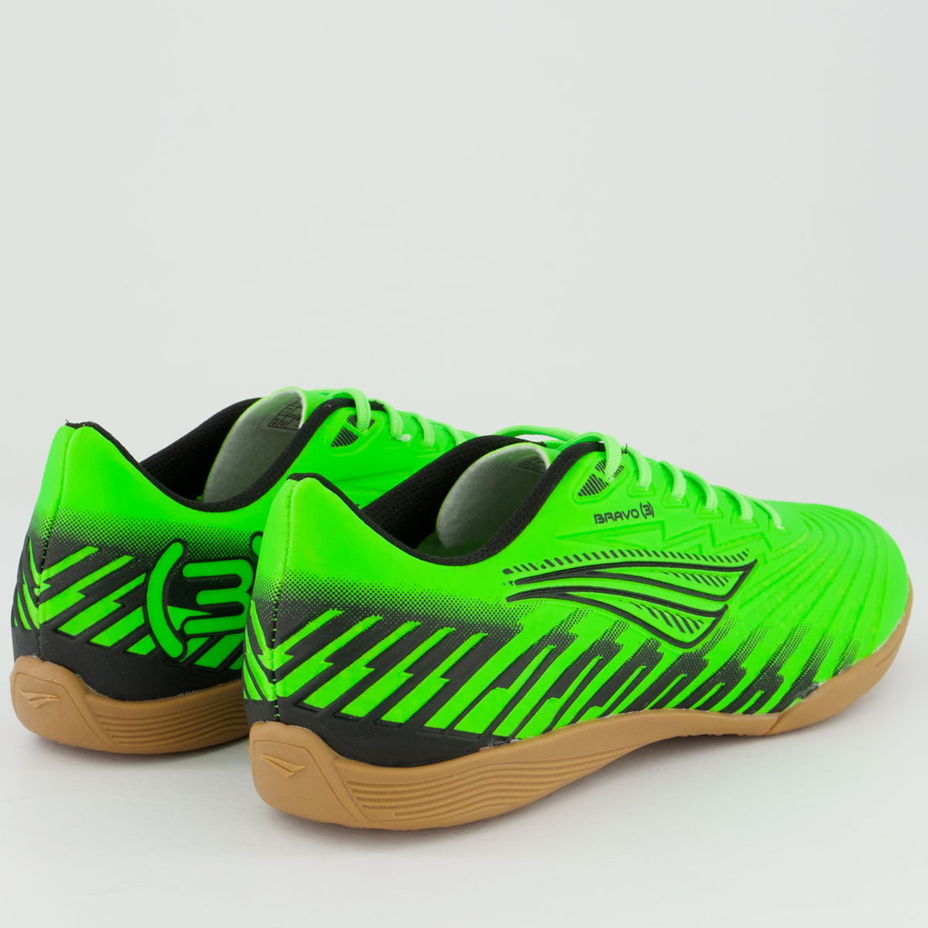 TecnologiasNon-Marking: Uma borracha que não marca a superfície e proporciona excelente tração.HiperFlex: Canaletas posicionadas estrategicamente para auxílio na flexão e movimentação dos pés.Composição cabedal (parte superior): Material sintéticoPalmilha: EVA, forrada e removível; facilita na higienizaçãoSolado: Borracha antiderrapanteForro: Material sintético acolchoadoCor predominante: Verde-limãoLingueta: Fina e flexívelIndicado para: FutsalGênero: MasculinoOrigem: NacionalAjuste: CadarçoPeso aproximado: 500g o par nº 40