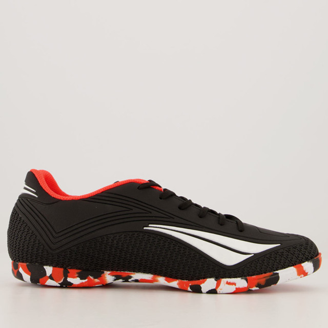 TecnologiaRotate: Ponto de giro que auxilia nos movimentos e evita lesões.Non-Marking: Uma borracha que não marca a superfície e proporciona excelente tração.HiperFlex: Canaletas posicionadas estrategicamente para auxílio na flexão e movimentação dos pés.Composição cabedal (parte superior): Material sintético laminadoForro: Revestimento em material têxtil acolchoadoPalmilha: Em EVA e removívelCor predominante: PretaLingueta: Fina e flexívelIndicada para: FutsalGênero: MasculinoSolado: BorrachaOrigem: NacionalAjuste: CadarçoPeso aproximado: 510g o par nº 39