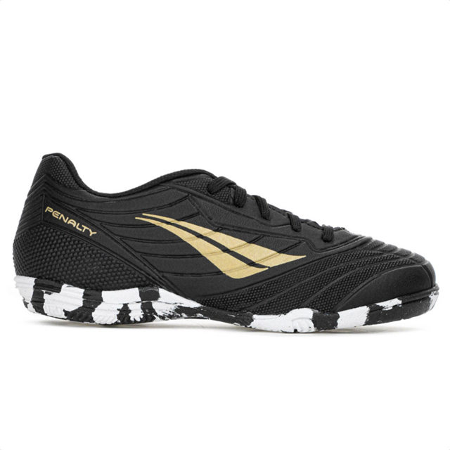 Chuteira Penalty Futsal Matis Kids XXI Preto Dourado e Branco - Infantil