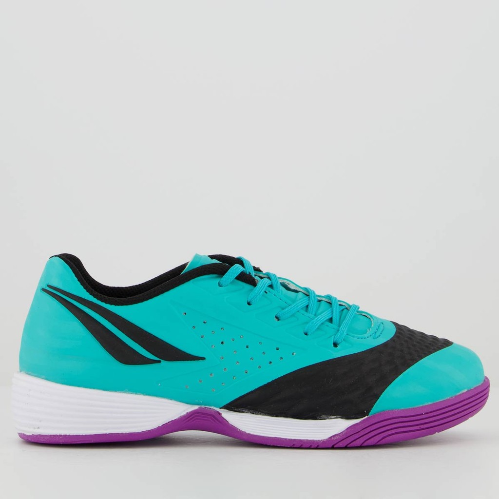 Composição Cabedal (Parte Superior): Confeccionado com material sintético Palmilha: EVA removível; facilita no momento da higienização Forro: Material têxtil com acolchoamento Solado: Borracha antiderrapante Lingueta: Fina e flexível Cor predominante: Azul Indicado para: Futsal Origem: Nacional Ajuste: Cadarço Idade: Juvenil Peso aproximado: 450g o par nº 35