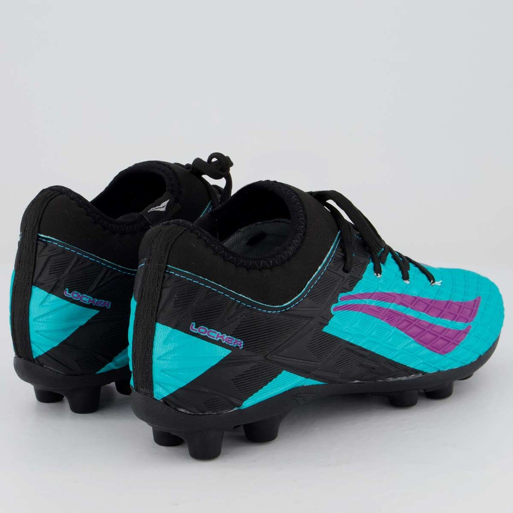 TecnologiasHiperFlex: Canaletas posicionadas estrategicamente para auxílio na flexão e movimentação dos pés.Locker: "Bota" que permite ajuste mais anatômico e maior conforto.Composição cabedal (parte superior): Confeccionado em material sintéticoPalmilha: PU conformada e removível; facilita na higienizaçãoSolado: TPU com travas altas e fixasForro: Material têxtil acolchoadoCor predominante: TurquesaIndicado para: CampoLingueta: IntegradaOrigem: NacionalIdade: JuvenilAjuste: CadarçoPeso aproximado: 400g o par nº 35