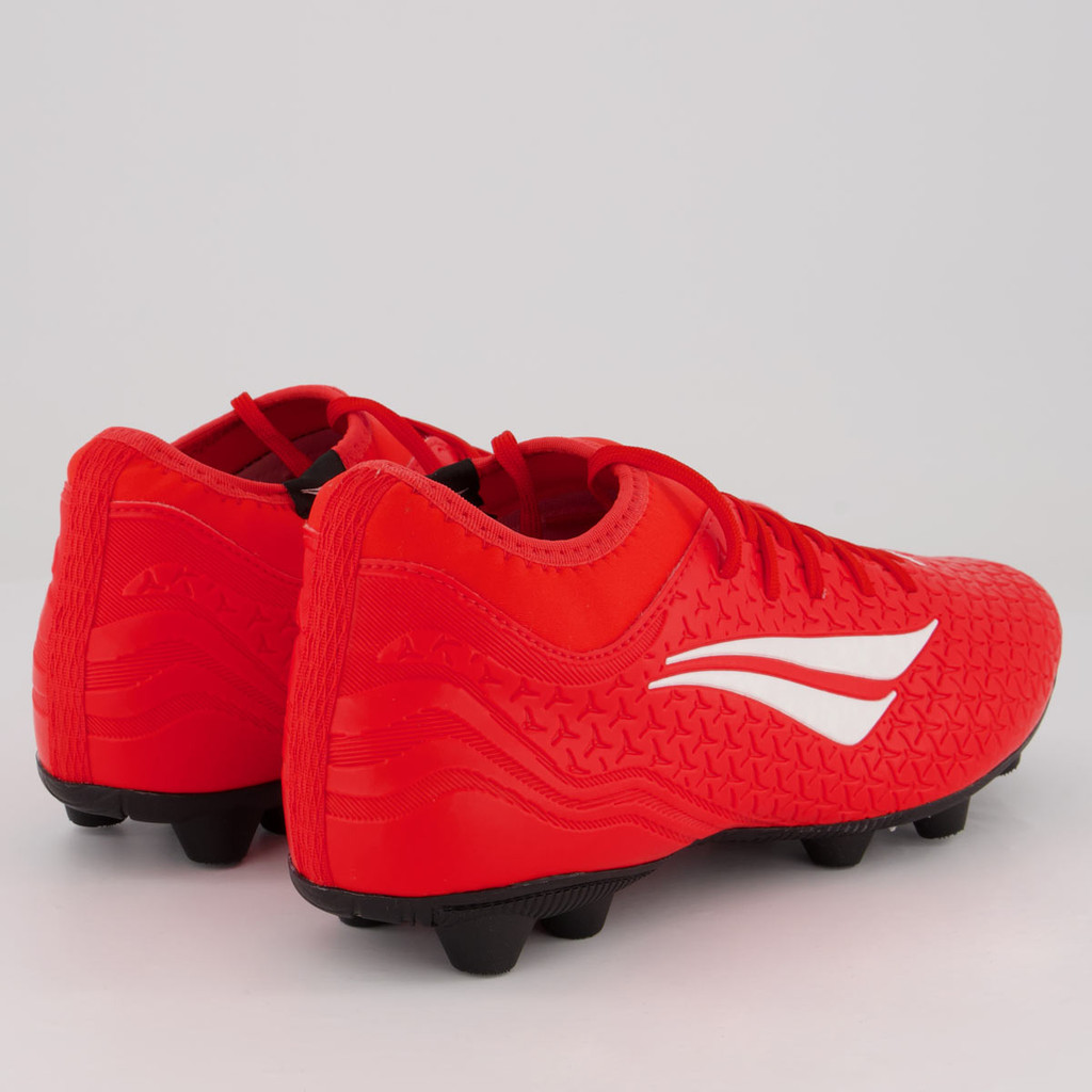 TecnologiasHiperFlex: Canaletas posicionadas estrategicamente para auxílio na flexão e movimentação dos pés.Locker: Botinha que garante mais estabilidade e conforto durante os movimentos do jogo.Composição cabedal (parte superior): Confeccionado em material sintético - tecnologia MicropowerPalmilha: EVA plana 3,5mm; oferece maior conforto aos pésForro: Revestimento em material sintéticoSolado: Borracha com travas altas, fixas e circularesLingueta: IntegradaCor predominante: VermelhaIndicado para: CampoOrigem: NacionalAjuste: CadarçoPeso aproximado: 520g o par nº40