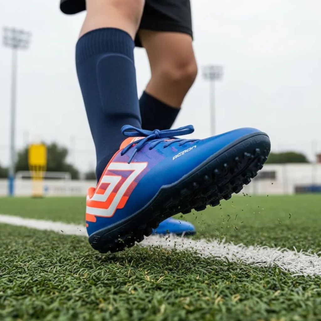 Chuteira Society Action Jr Umbro Modelo: U07FB00286 Indicada para jogadores juvenis iniciantes que se destacam nos treinos e partidas, a Chuteira Society Umbro Action Jr exibe artes gráficas personalizadas aplicadas em camadas, com efeito degradê, para um visual autêntico e moderno no melhor estilo Umbro. Cabedal confeccionado em material laminado de fácil limpeza e manutenção. Possui grafismos em ?layers? com aplicação de verniz incolor sobre as artes, Diamante Umbro em destaque na lateral, assinatura do modelo na parte frontal e palmilha interna macia em EVA com tecido forrado. O solado de society HG é composto por blenda de PVC e TPU, que oferece aderência ao solo e durabilidade. Características: - Design: Artes gráficas personalizadas com efeito degradê, estilo moderno e autêntico. - Material do Cabedal: Confeccionado em material laminado de fácil limpeza e manutenção. - Grafismo e Detalhes: Grafismos em "layers" com aplicação de verniz incolor e Diamante Umbro na lateral. - Solado: De society HG, composto por blenda de PVC e TPU, proporcionando aderência e durabilidade. - Assinatura do Modelo: Nome do modelo na parte frontal. - Palmilha: Interna, macia em EVA com tecido forrado. Composição: - Cabedal: 100% Sintético. - Forro: 100% Poliéster. - Palmilha: 90% EVA e 10% Poliéster. - Sola: 90% PVC e 10% TPU. Encontre a Chuteira Society Action Jr Umbro na Usee Brasil! A Usee Brasil oferece uma ampla variedade de produtos esportivos de qualidade e entrega rápida. Aproveite para conhecer nossa loja e descobrir tudo o que temos para você!