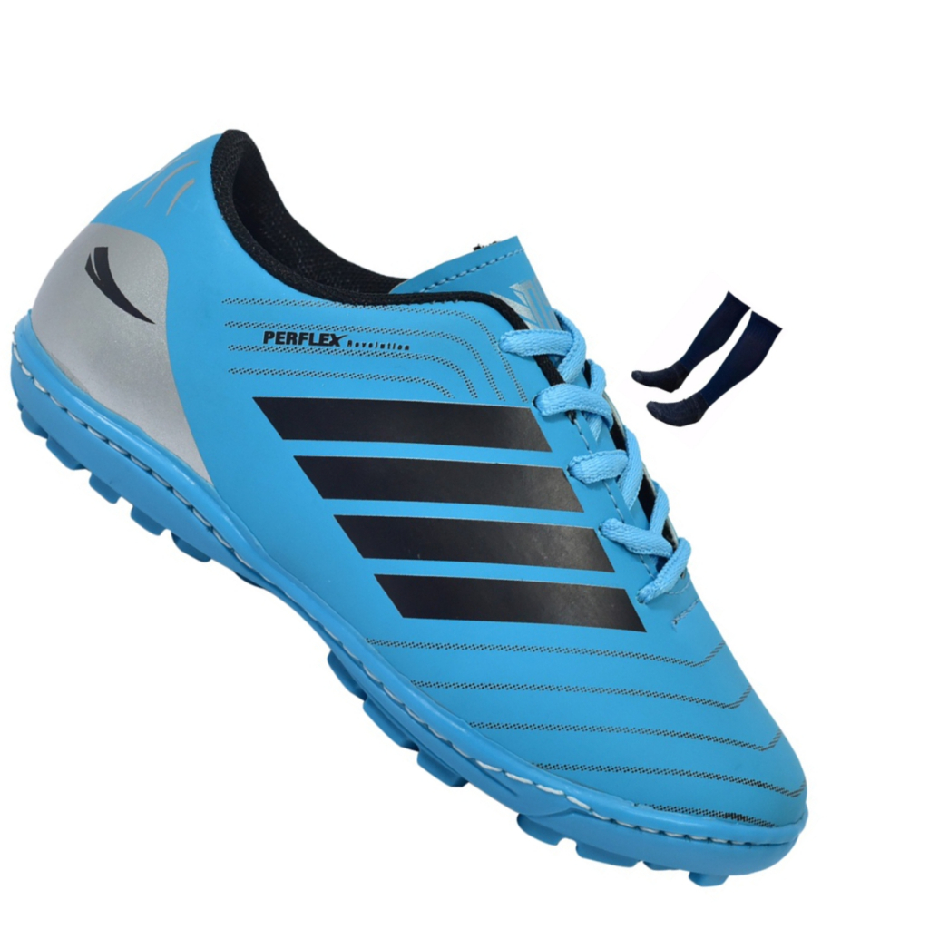 Chuteira society Adulto e Infantil REVOLUTION com Meião Colada e Costurada Promoção