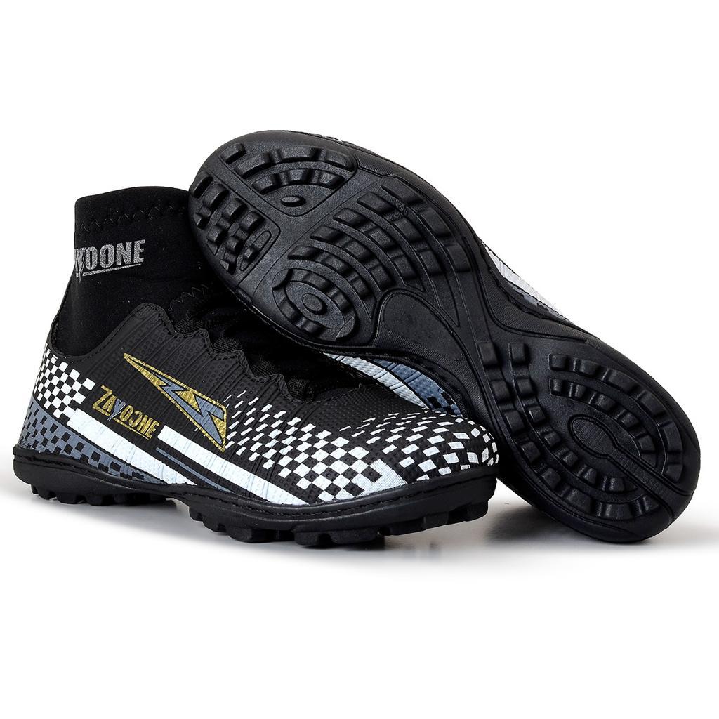 >>> ATENÇÃO <<< . AS FOTOS DO ANUNCIO INTEIRO, SÃO FOTOS REAIS DO PRODUTO VENDIDO. Nome: Zayoone Gênero: unissex Indicado para: Campos de grama sintética ou campos de terra Material: Couro sintético Cano: cano alto amarração: Com Cadarço Composição: Cabedal: em Couro. Entressola: em EVA. Solado: em Borracha Peso Aproximado: 273 g (o peso do calçado varia de acordo com a numeração). O que acompanha: - Um par de chuteira - Uma caixa. - Um par de cadarços. vale a pena conferir. APROVEITEM Masculino do 34 ao 43 Feminino 34 ao 42