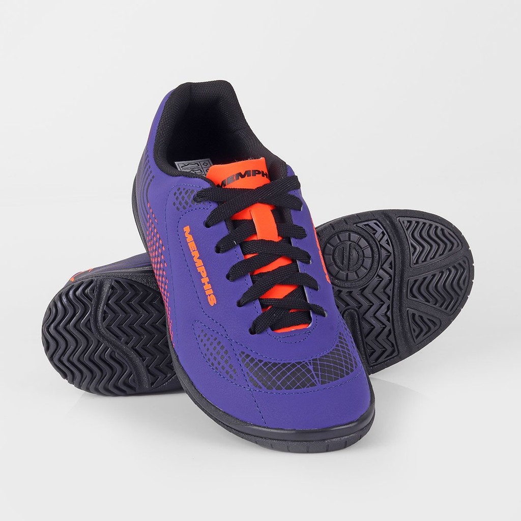 Chuteira tênis de futebol society infantil Memphis M299 Roxo laranja